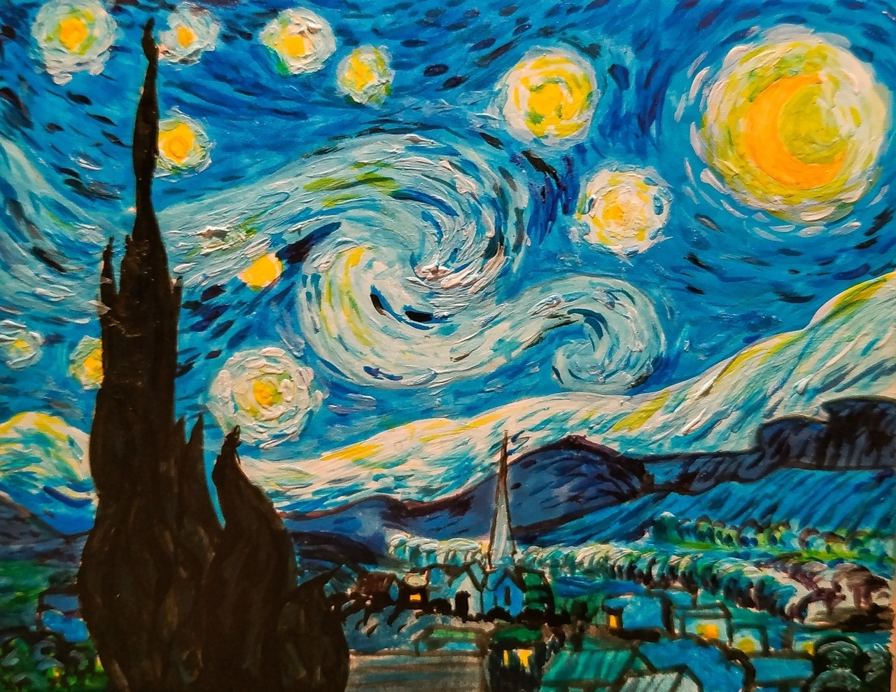 Миниатюрная репродукция картины "Звёздная ночь" Ван Гога