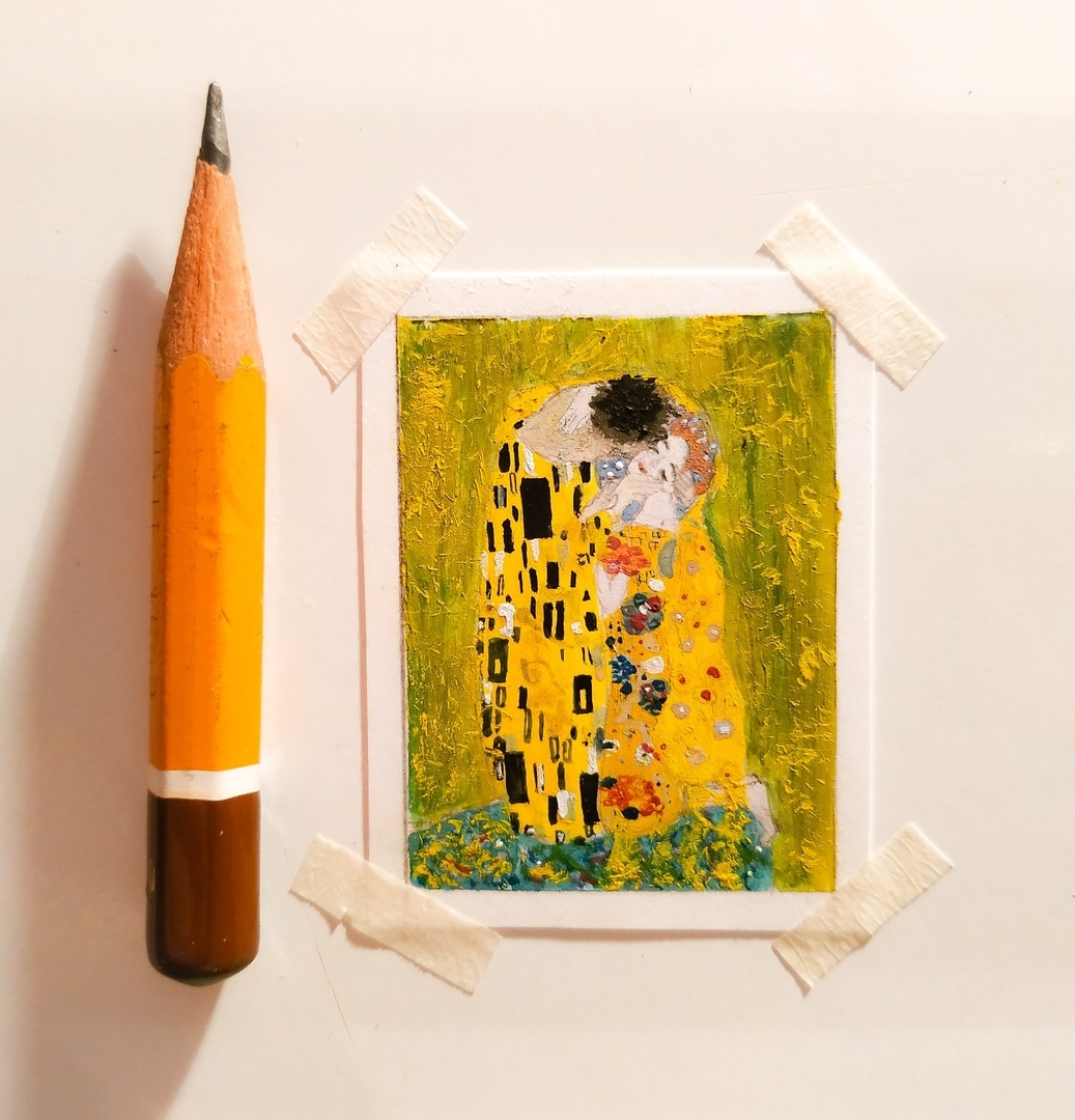 Миниатюрная репродукция картины "Поцелуй" Густава Климта